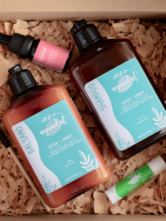 En Aguadal utilizamos sólo ingredientes de origen vegetal, trabajamos con hierbas orgánicas locales de la Patagonia Chilena, recolectadas de manera justa y amigable , fabricamos nuestros productos con eficiencia energética y todos nuestros envases son reutilizables o reciclables.